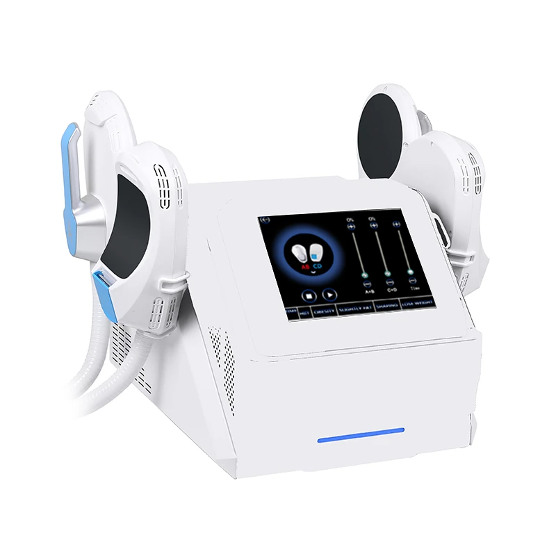 Ems Body Shaping Machine with 2 Technologies: EMS and RF. EMS is Electromagnetic System which can helps muscles move quickly, increases muscle toughness and muscle mass, and reduces fat. RF is Radio Frequency Tech, which can help tighten skin.