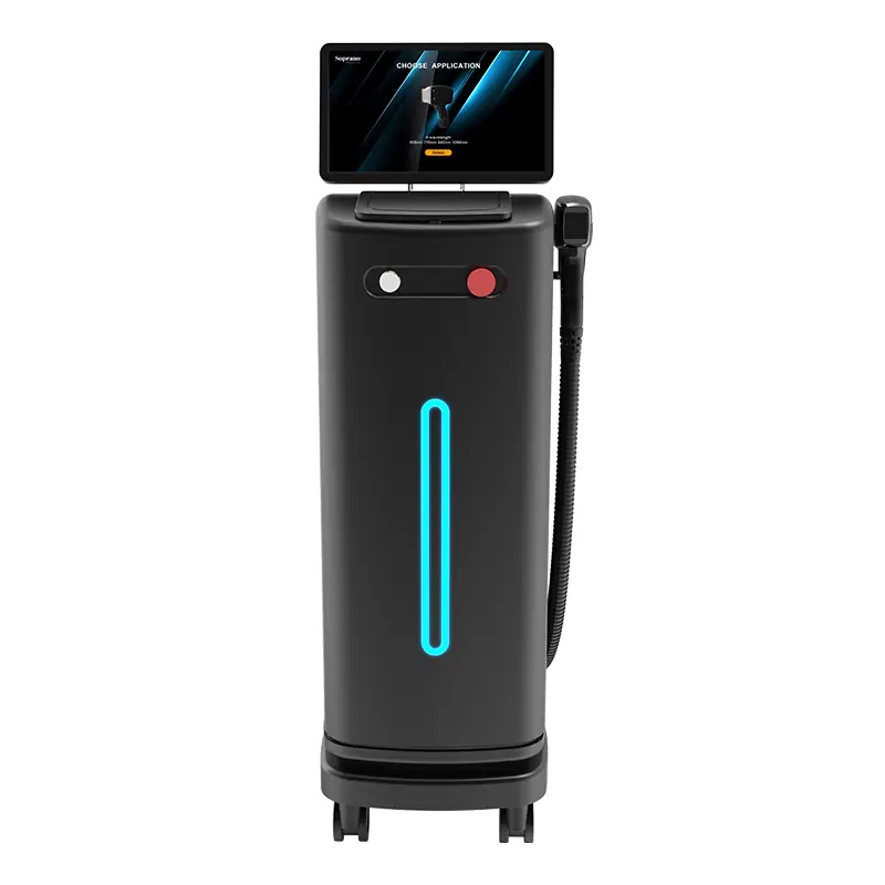 Redefining the professional diode laser hair removal experience. Its exclusive aesthetic design integrates dual TEC cooling and an Italian-imported water pump, achieving painless treatment at -25℃. The newly upgraded UV-C disinfection system provides medical-grade hygiene for every client. One device can handle all skin tones and hair types, achieving both high efficiency and safety.